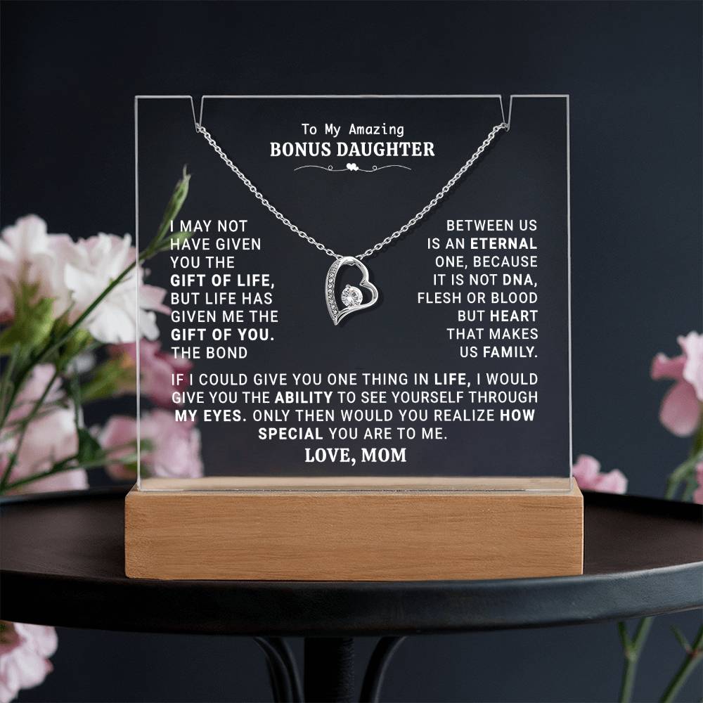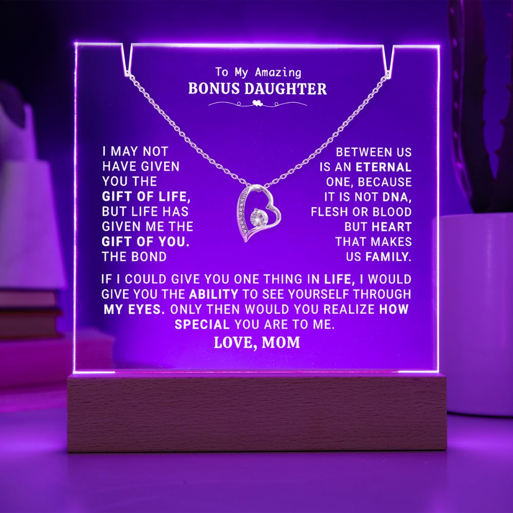 To My Bonus Daughter | HEART MAKES US FAMILY | KEEPSAKE ACRYLIC BUNDLE.